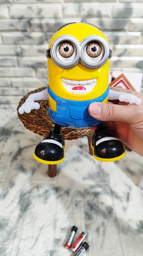 اسباب بازی مینیون موزیکال بوده و با حرکت دست و پا به دو طرف راست و چپ حرکت میکند و در صورت برخورد جهت حرکتش را تغییر می دهد . موزیکال و دارای نور پردازی و قابلیت حرکت دادن چشمانش را نیز دارد