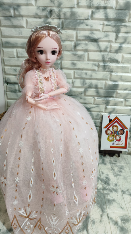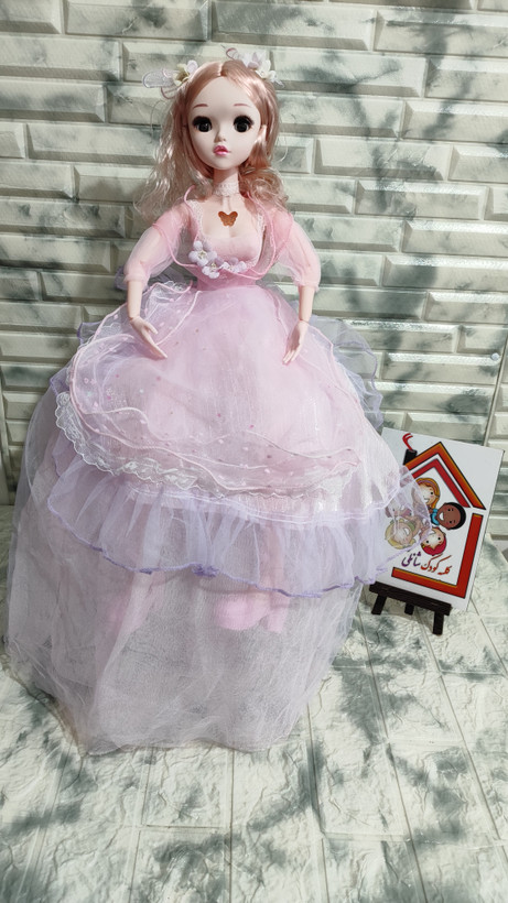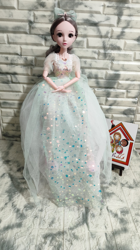 عروسک چشم تیله ای ،لباس مجلسی تمام مفصل موزیکال چراغدار با قد ۷٠ سانتیمتر