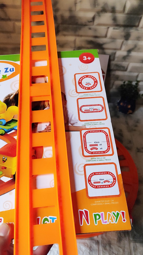 قابلیت تنظیم چهار حالت ریل در سایزهای: 41×41 سانتیمتر 43×43 سانتیمتر 94.5×41 سانتیمتر 63×61 سانتیمتر - دارای 4 ریل دایرهای و 4 ریل مستقیم - دارای سه عدد اسباب بازی قطار (لوکوموتیو و واگنها)