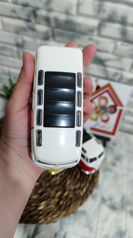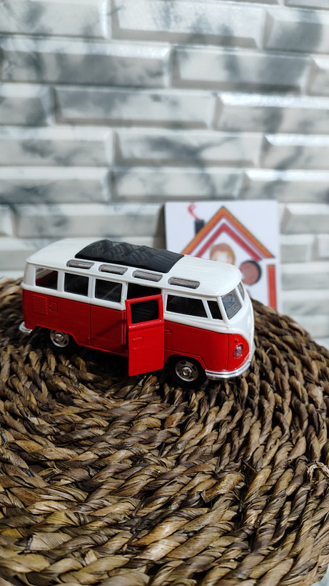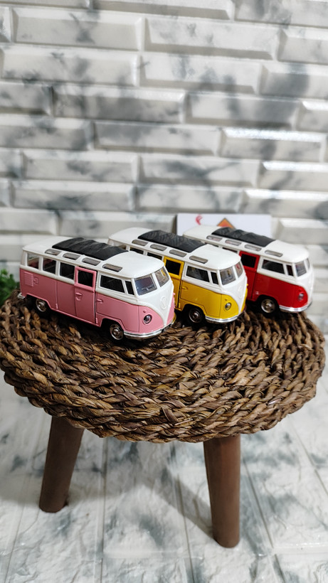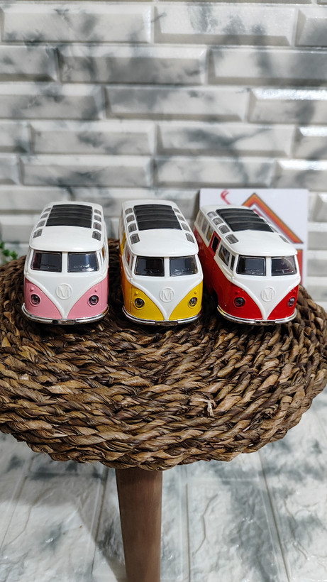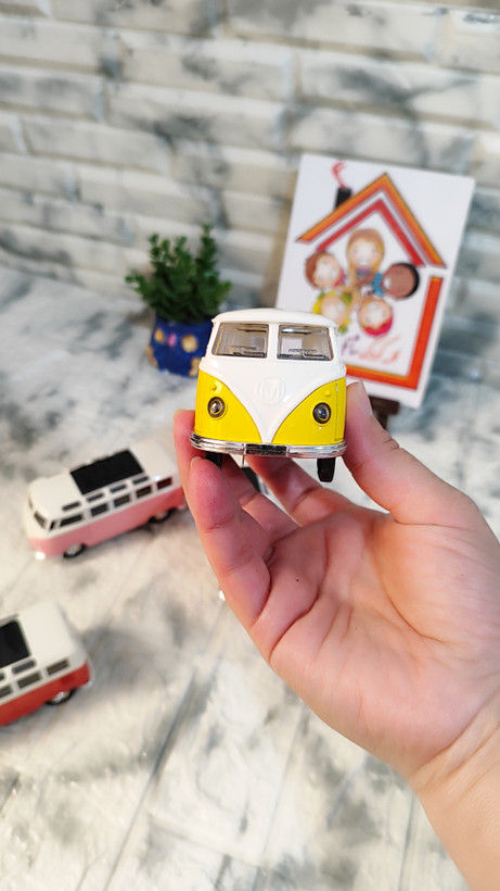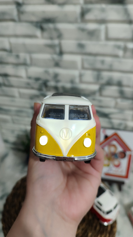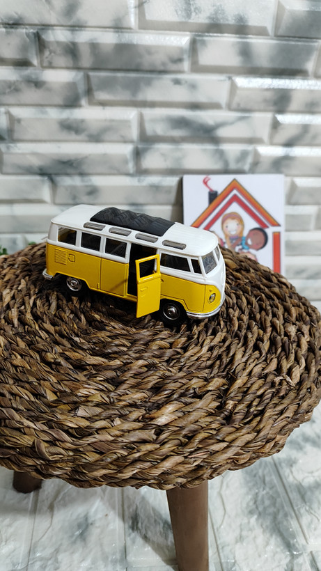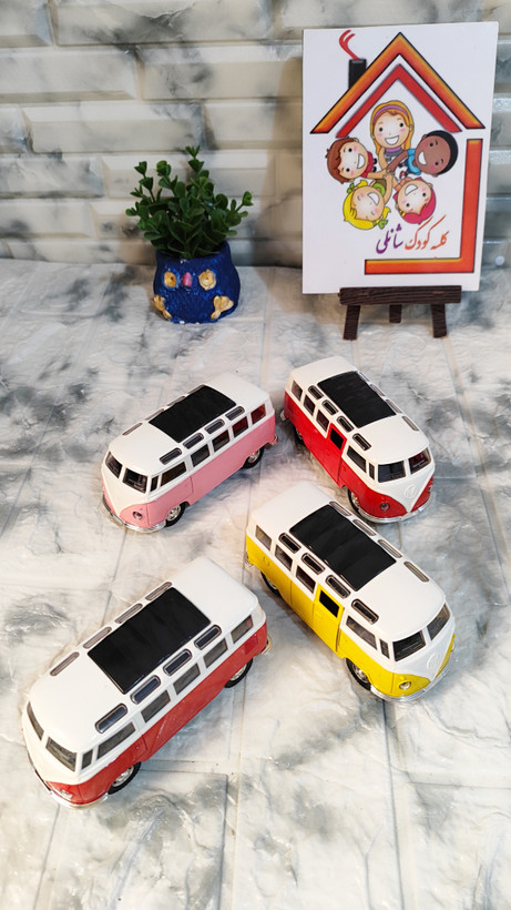 ماکت فلزی فولکس واگن بدنه فلز سقف پلاستیک صداوچزاغ دار طول 13 ثانت درب بازشوفله